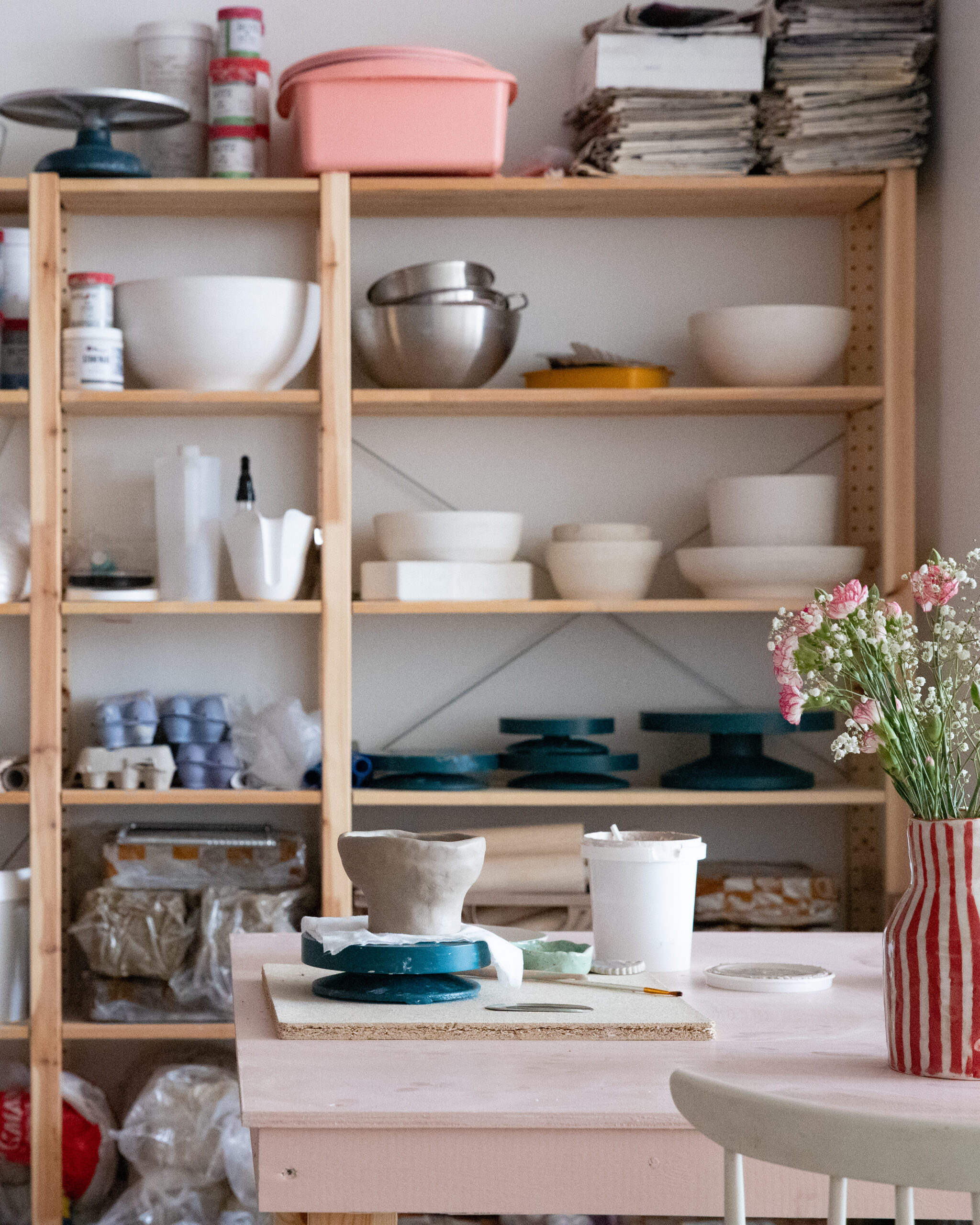 Savet ostetaan studiolta erikseen tai vaihtoehtoisesti käytössä voi olla omat savet, jos ne ovat korkeanpolton savia.Varaa omille savillesi joku kannellinen laatikko jos säilytät niitä studiolla.